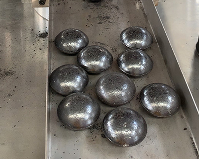• 碳粉塊壓制成球形